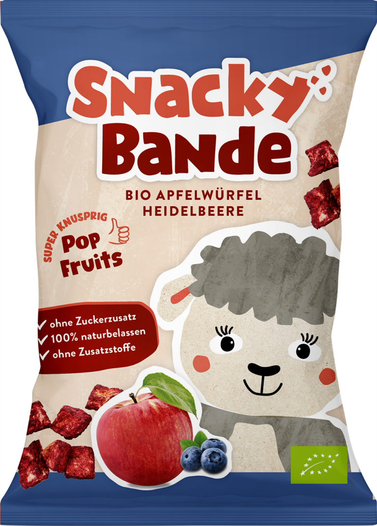 Die Snacky Bande Apfelstückchen sind Pop Fruits, exklusiv hergestellt mit dem patentierten und ressourcenschonenden Verfahren Eco Dry 2.0. Hierbei werden die getrockneten Früchte in einem Vakuum-Verfahren aufgepoppt, gewinnen dadurch an Geschmack, Volumen und Crunchyness. Die Nährstoffe und Vitamine der frischen Äpfel bleiben erhalten.