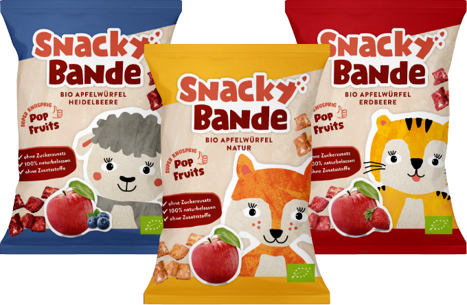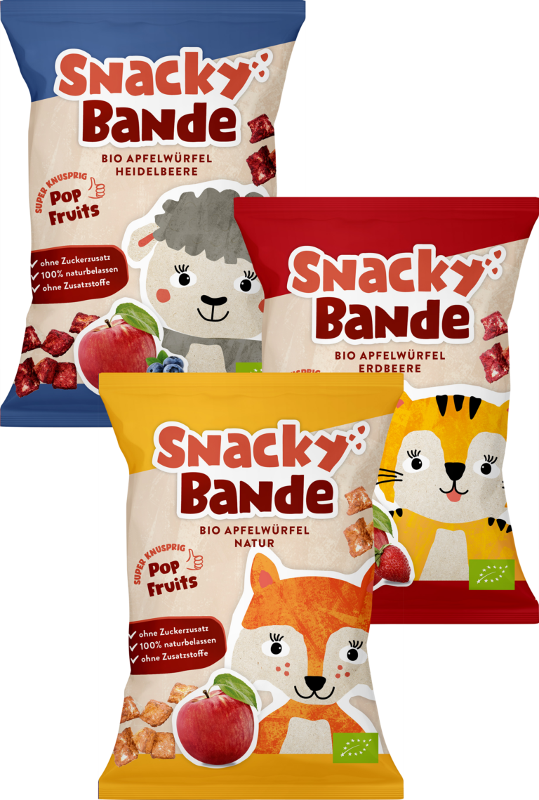 Zusammen geht alles leichter. Die Snacky Bande begleitet dich, egal was du vorhast. Die Apfelwürfel der Snacky Bande bieten wertvolle Ballaststoffe, sind ohne Zuckerzusatz und bringen schnelle Energie. So können wir gemeinsam die Welt entdecken.